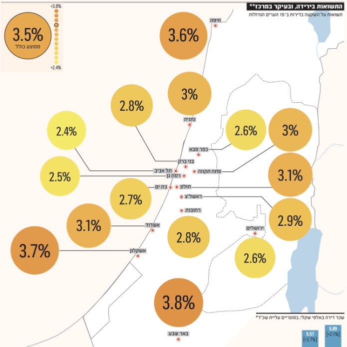 התשואה משכירות יורדת יותר ויותר בשנים האחרונות. כיום היא עומדת על 3.5% בממוצע ארצי.